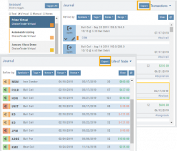 The Journal displays the Life of Trade for the account and any other filters you select. Rotate to Landscape to optimize view.