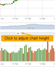 The height of the chart can be adjusted by clicking and dragging the tab under the main chart.