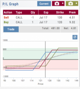 icon), the Action icon choices includes: ‘Analyze Position’ which will take you to the Options tables and/or ‘Trade’ which will lead you to the Order Ticket of the Brokerage Account from the menu.