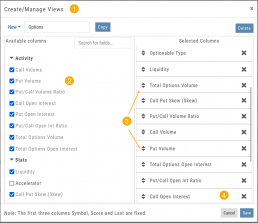 The ability to create your own Watchlist views based on criteria important to you enhances the work flow of finding the best candidates for trading.