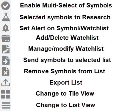 The Market & Watch Tab Icon ToolBar allows you to Create/Modify/Manage your Lists.