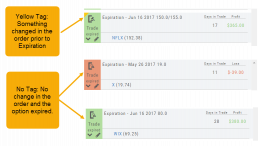 Yellow tag: There was a change in the Option position. For example, an option was exercised before expiration – or the order was adjusted.