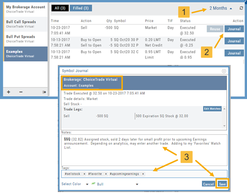 3. You can add Notes, #tags, outlook to be included in the Journal. Click “Save”. (Note the Account Name where this trade will appear)