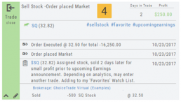 Notice: The Entry is a Day Order, the Exit is a GTC order