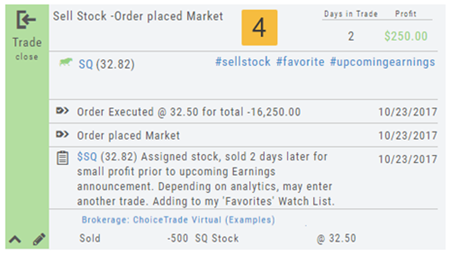 4. The trade is now updated in the Journal Tab. Expand the tab to see trade detail: Number of days in the trade, the profit (loss), order execution details, notes, tags, the Account Name containing the trade, etc.