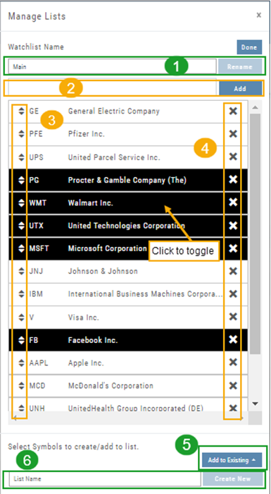- Highlight symbol(s) to Create a New Watchlist
