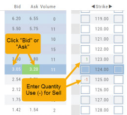 For positions that include the underlying stock, such as Covered Calls, Protective Puts & Collars, enter the stock quantity in the upper right corner of the chain window.