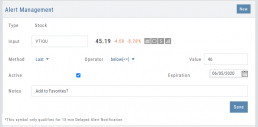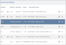 Alert Management, located in Research, allows for easy modifying or removing active alerts from your current list.