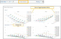 The Option Chain pages offers a 3-D analysis comparing expiration dates by selected criteria.