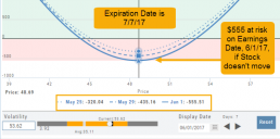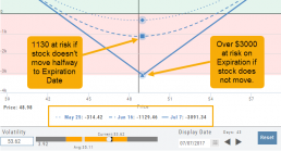 - The Graph shows 3 data points: Current Day, Halfway point to Expiration Day & Expiration Day. The corresponding legend, immediately below the graph, follows the cursor slider along the graph.