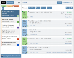 The Journal default displays Order/Trade activity from the Activated Trade Account.
