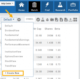 The ability to create your own Watchlist views based on criteria important to you enhances the work flow of finding the best candidates for trading.
