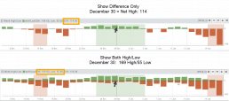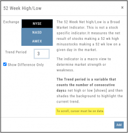 Show High & Low (uncheck box)– Displays both green/red bars to illustrate number with new 52 week high/lows.