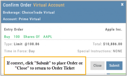 Clicking “Submit” will send the order directly to the supporting brokerage.