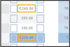 When evaluating an existing position on the options chain, the positions held are indicated with arrows on the chain. The arrows point to the quantity entry box of the held position.