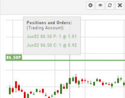 Charts display working orders and existing positions of selected brokerage accounts, currently Choice Trade and TD Ameritrade. More brokerages will be forthcoming.