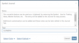 Simply click on the icon and select “Journal” for the Symbol and current price to be captured.