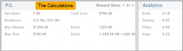 The Quantity value default is “1” to show the ‘per share’ dollar and percentage estimated risk, reward, as well as Position Total.