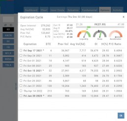 The Option Chain Expiration Table gives you control of selecting which Expiration Cycle(s) you want to view.