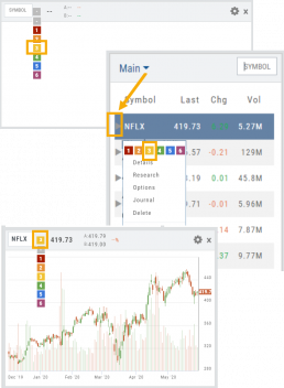 Rather than enter a symbol on each Chart, Quote or News component, you can assign a number to each widget.