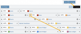 Start by adding Widgets: Chart, Quote and News pertaining to the stock, and even Market News The platform system will automatically adjust according to the available space on your desktop/laptop.